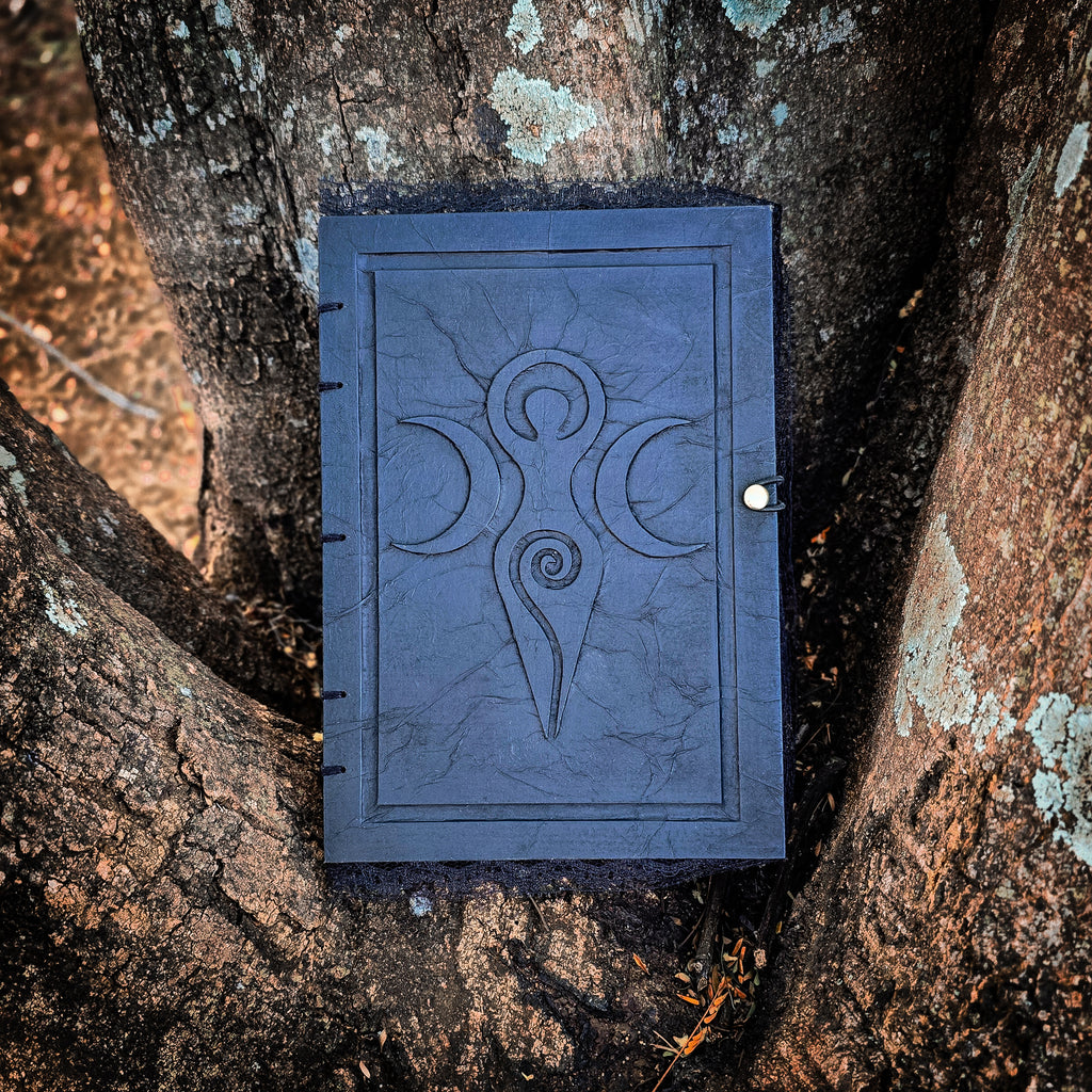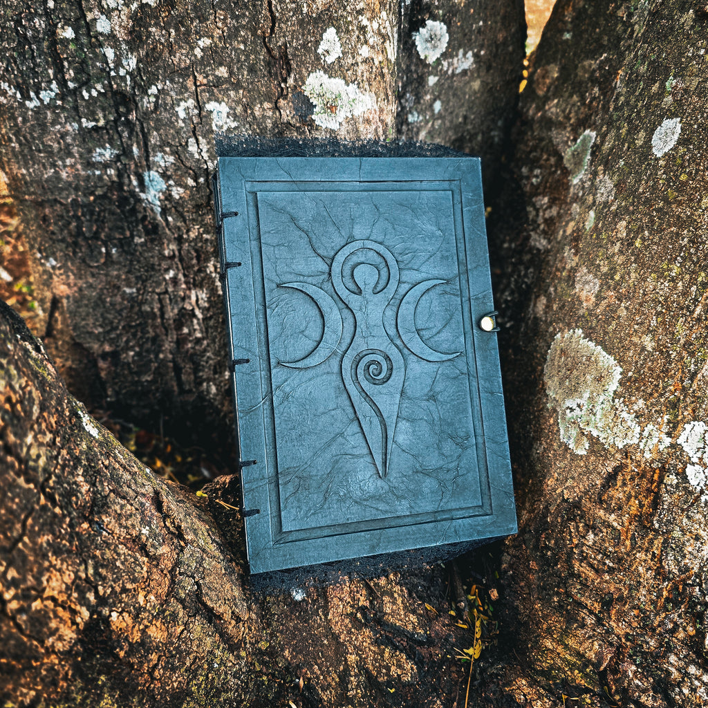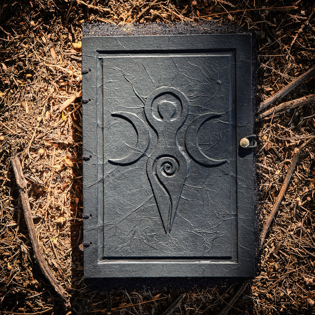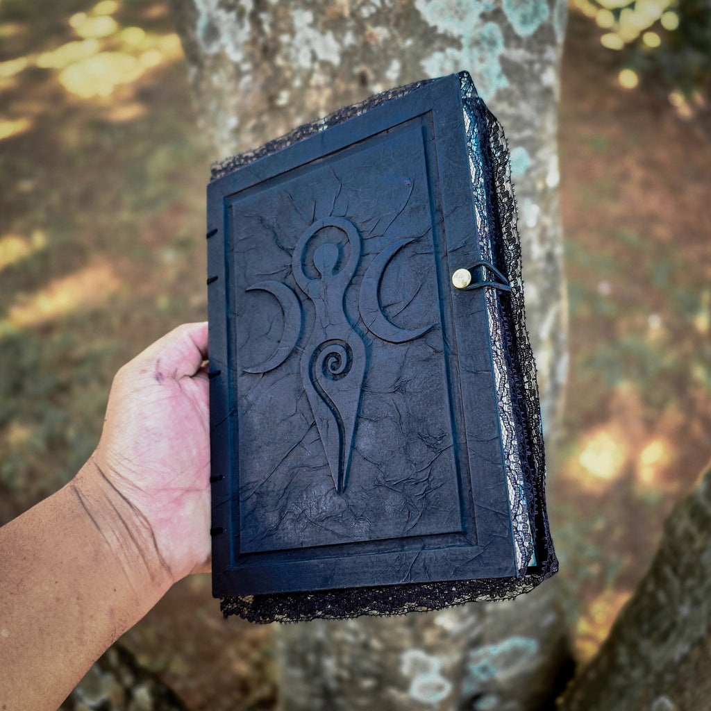 - *Relevo*: Capa preta com relevo da Deusa Tríplice, simbolizando a sabedoria, a beleza e o poder feminino
