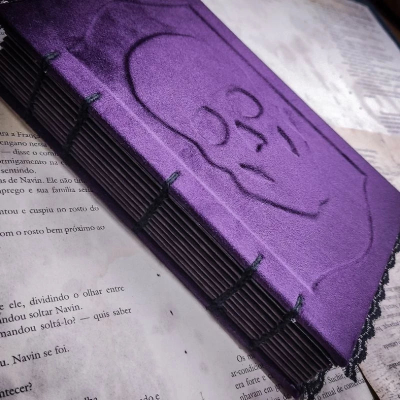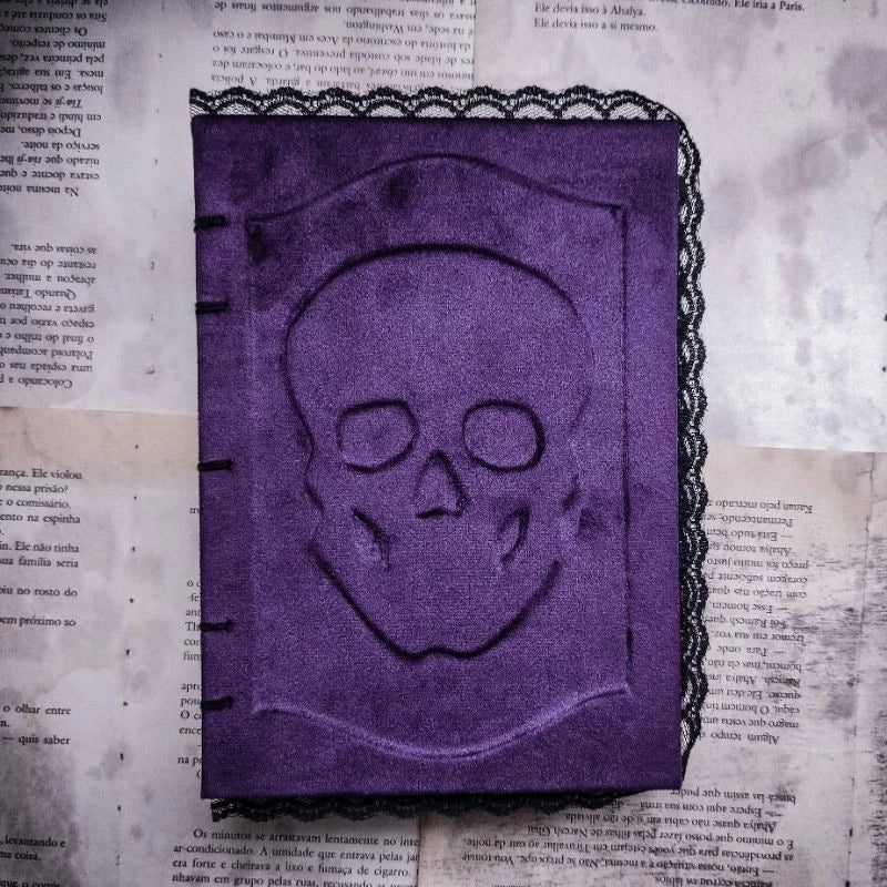 - Estilo Único: O revestimento em veludo roxo e a temática de caveira tornam o diário uma peça de destaque, ideal para quem deseja se diferenciar.