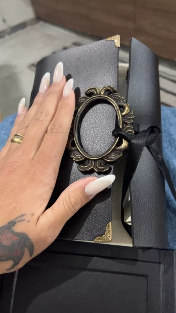 Carregando todos esses Caprichos este Diário corresponde com os mais ricos detalhes desde a Era Medieval até a Era Moderna, Feito 100% por Couro Sintético, com Arabescos Banhados em Ouro e Cobre, 160 páginas de Folhas Envelhecidas de 75g para nunca lhe faltar folhas para escrever ! Um lindo Design feito 100% a mão e com um Laço de Cetim Delicado que é o que separa esta Linda capa das Anotações de suas Conquistas e Bons momentos escritos nas suas folhas!